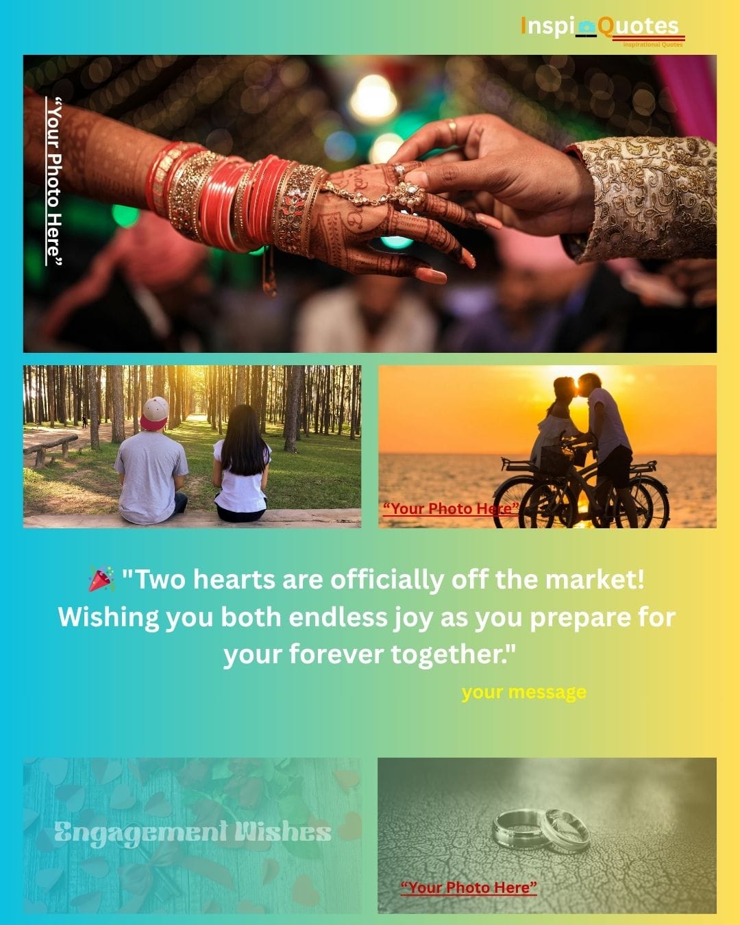 Message: "Two hearts are officially off the market! Wishing you both endless joy as you prepare for your forever together."