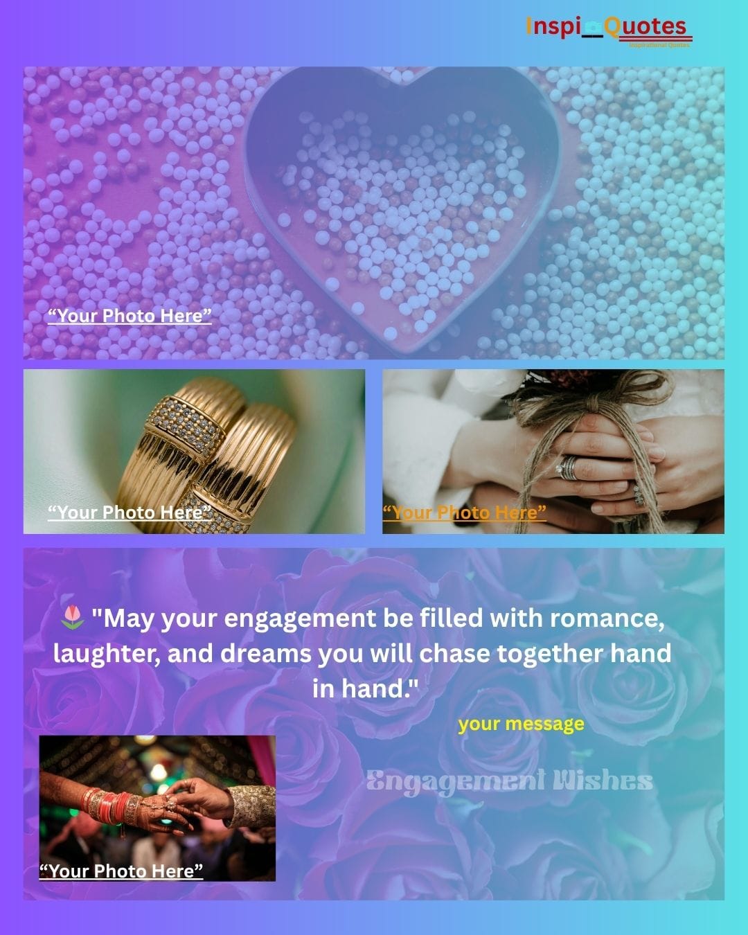 Message: "May your engagement be filled with romance, laughter, and dreams you will chase together hand in hand."