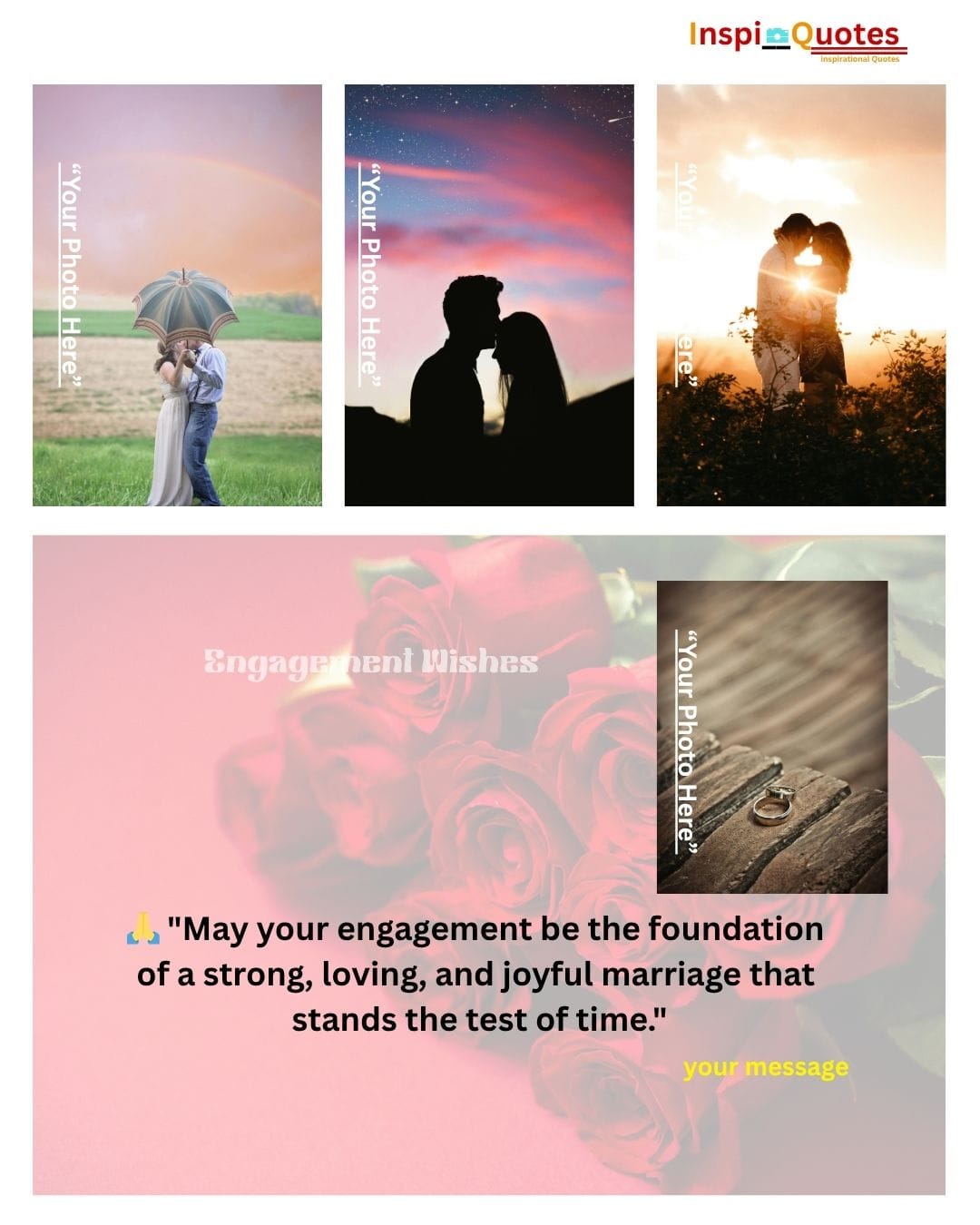 Message: May your engagement be the foundation of a strong, loving, and joyful marriage that stands the test of time.
