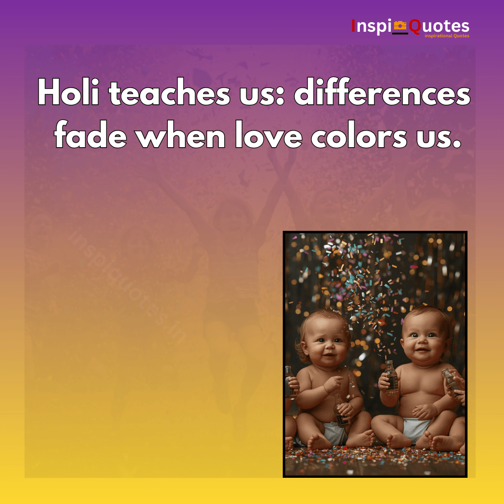 This baby duo turns difference into unity. The quote reframes Holi as a lesson — where love becomes the color that blends all boundaries. The confetti adds emotional softness and celebration.