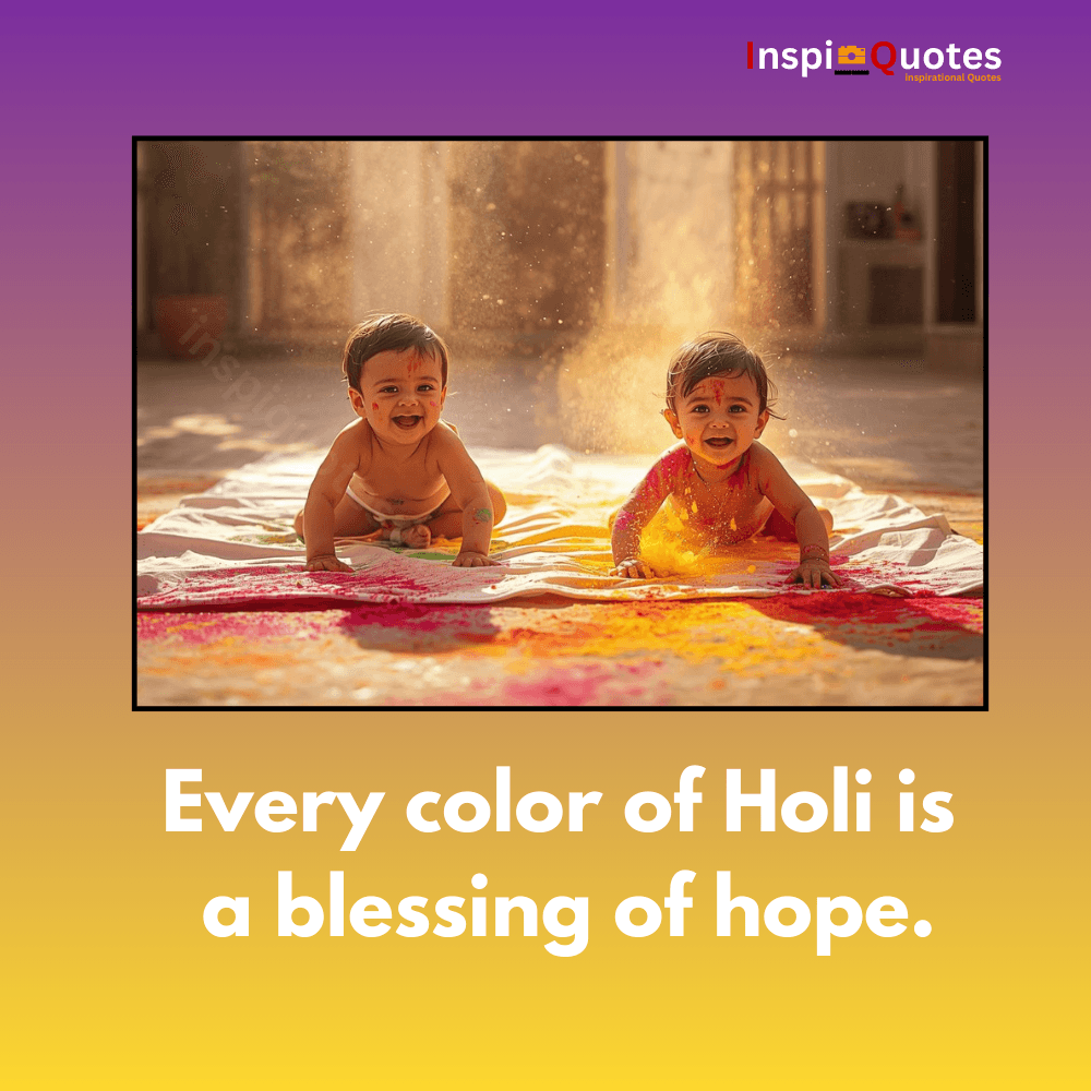This courtyard crawl turns color into blessing. The quote celebrates Holi as a moment when every hue becomes a symbol of hope. The children’s joy reflects emotional purity and playfulness.