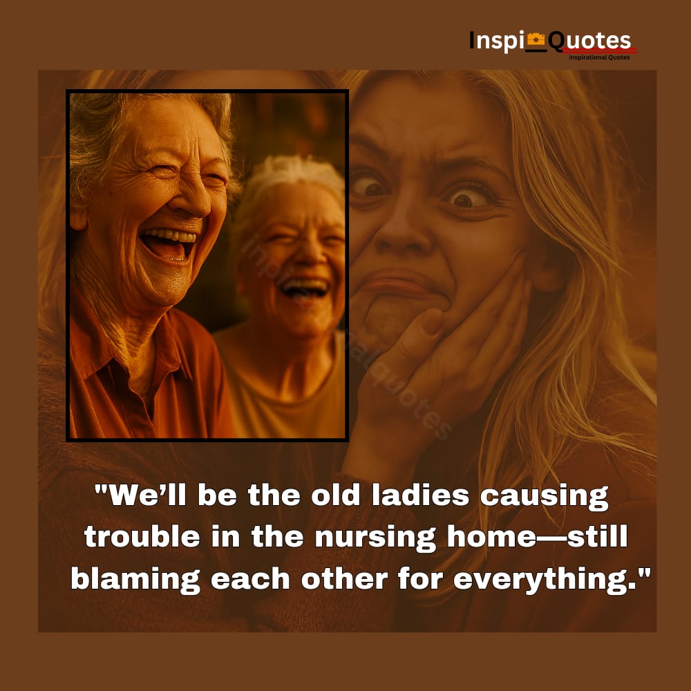 This sepia mischief turns elegance into entropy. The quote reframes friendship as polished chaos. The exaggerated expressions reflect emotional freedom and shared sabotage.
