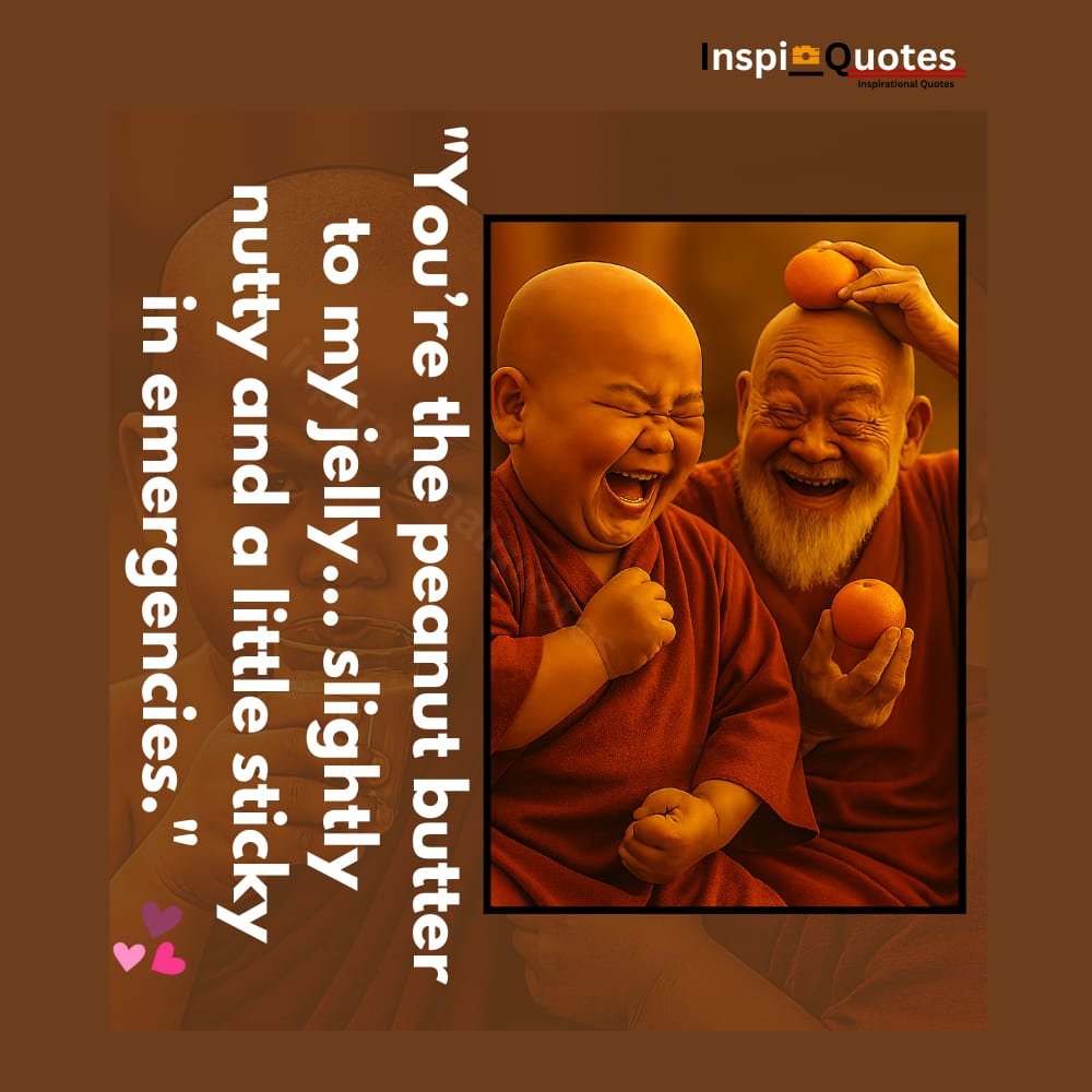This orange-peel moment turns nuttiness into nurture. The quote celebrates quirky loyalty with flavor. The clenched fists and laughter reflect emotional stickiness and snack-sized devotion.