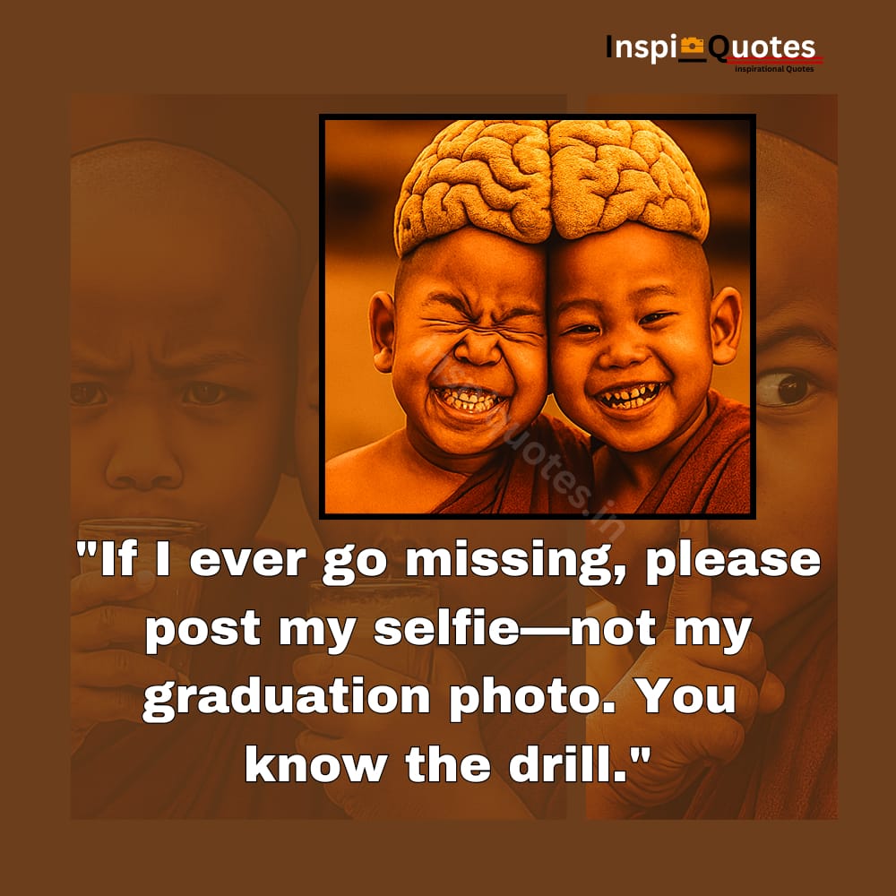 This selfie satire turns identity into irony. The quote reframes representation with humor. The brain-headed edit and serious pose reflect emotional awareness and playful rebellion.