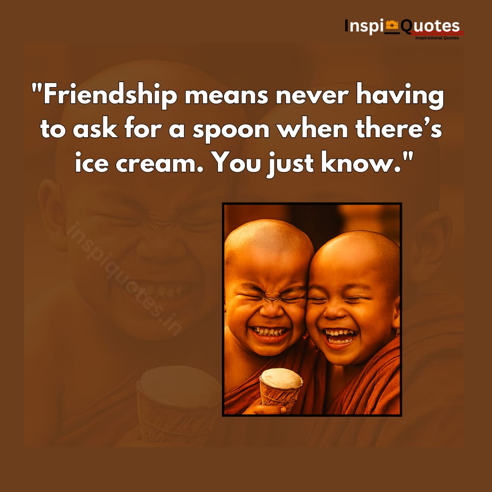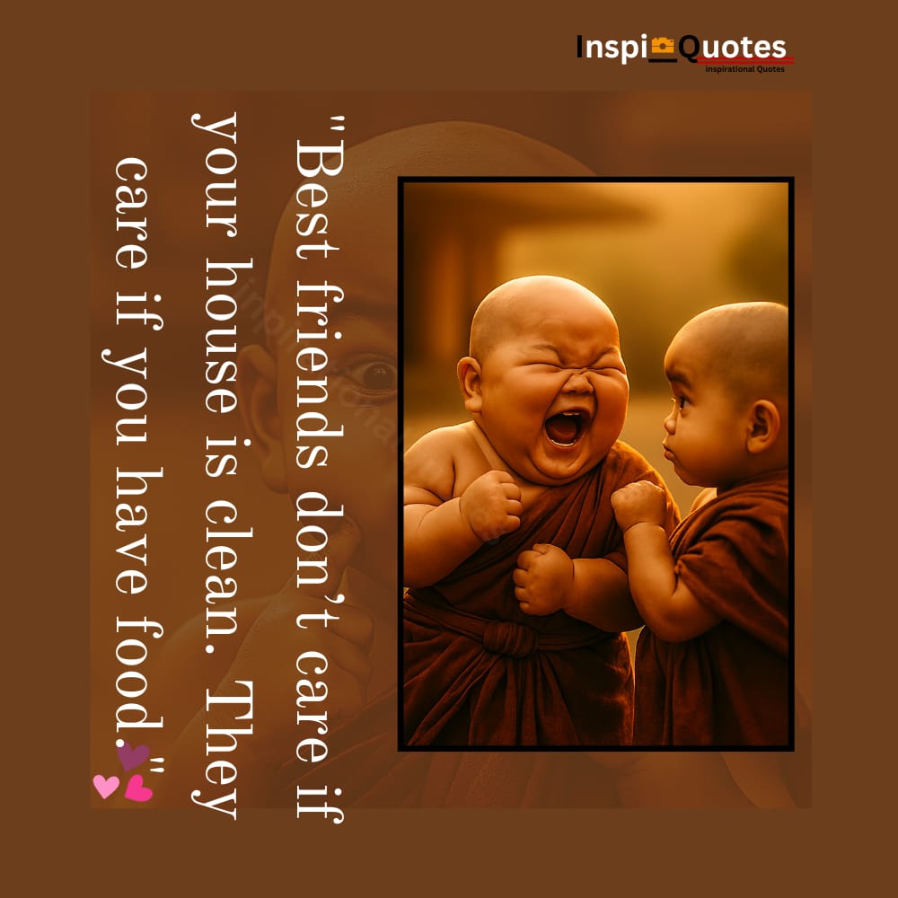 This snack squad turns cleanliness into comedy. The quote reframes friendship as food-first loyalty. The laughter and monk robes reflect emotional simplicity and shared priorities.