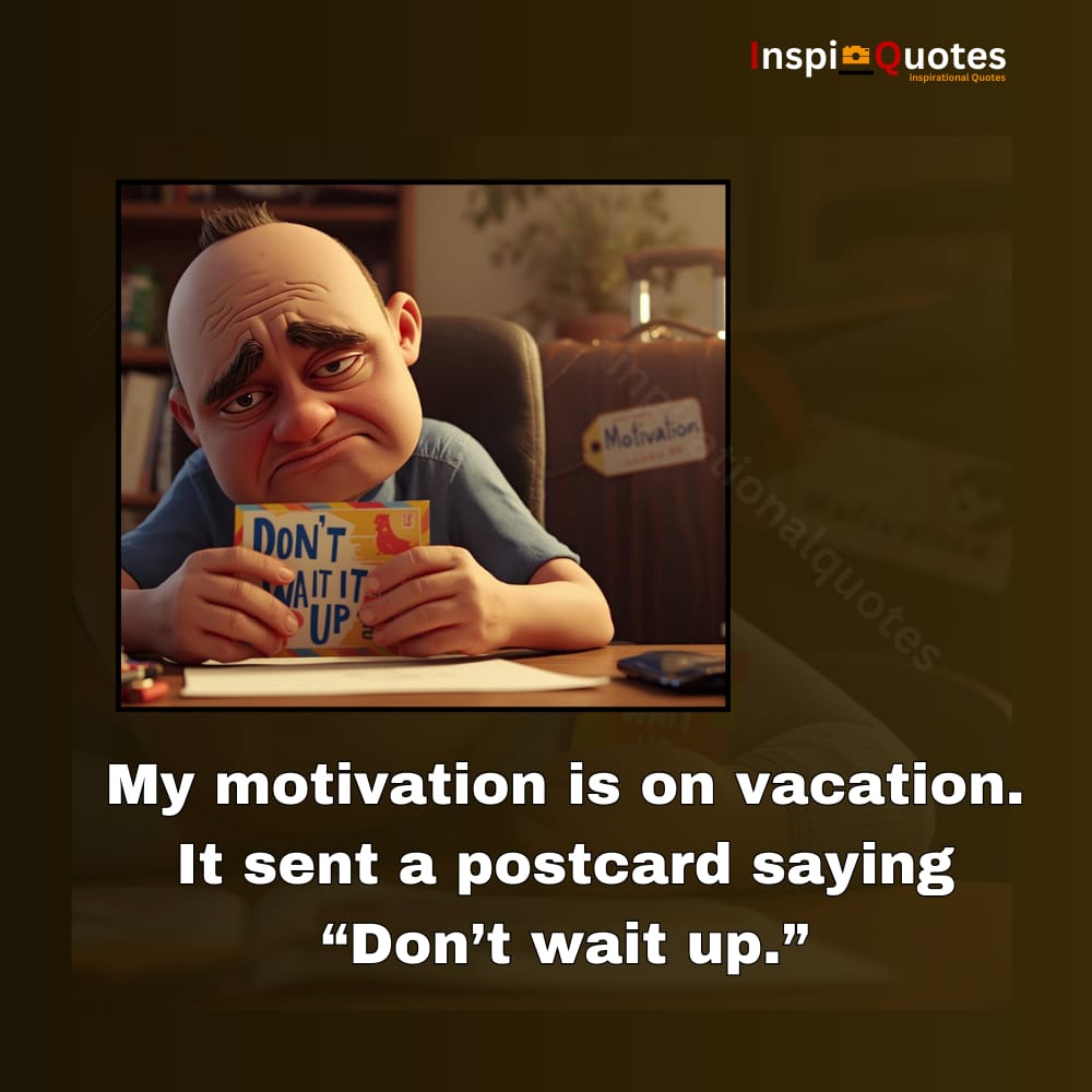 This quote turns burnout into a vacation metaphor. It’s not laziness — it’s emotional distance. By imagining motivation as a traveler, it humorously captures the feeling of being left behind by your own drive.