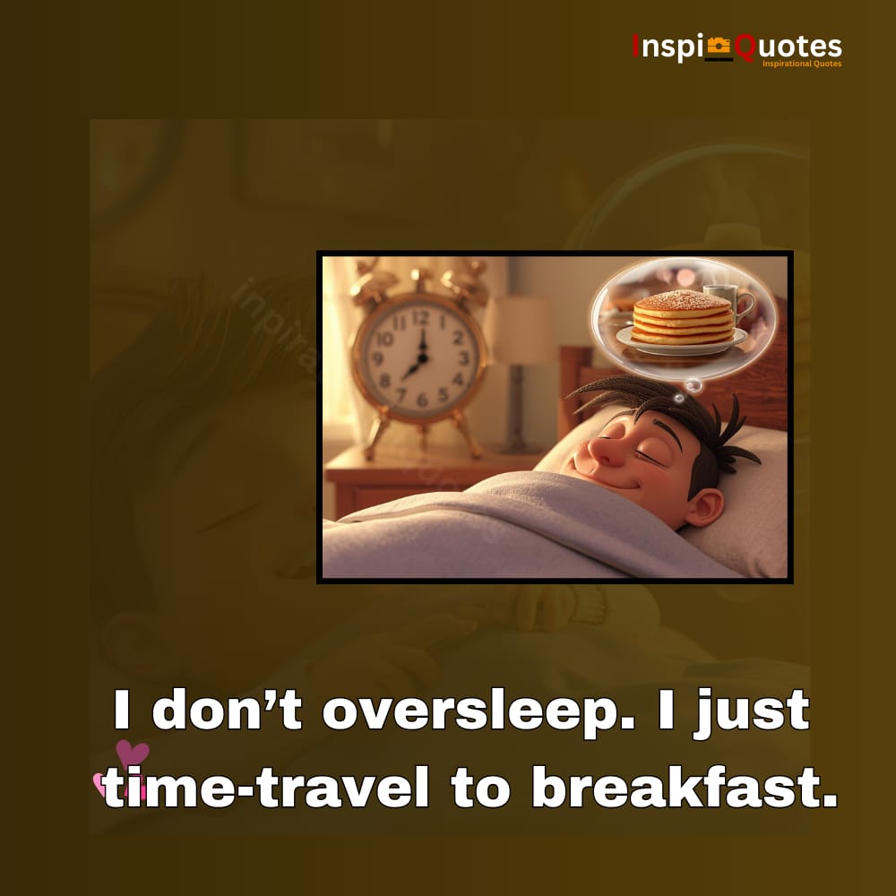 Oversleeping gets a whimsical upgrade here. This quote turns a common habit into a time-travel fantasy, reframing guilt as imagination. It’s not laziness — it’s a dreamy detour to breakfast bliss.