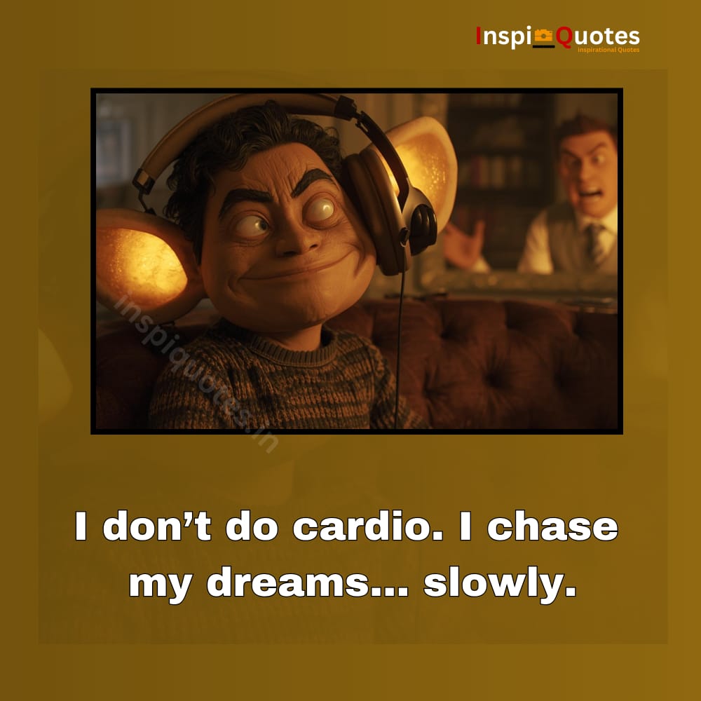 This quote turns slow progress into poetic pursuit. It’s not cardio — it’s a dream chase. It celebrates ambition at its own pace, reminding us that movement matters more than speed.