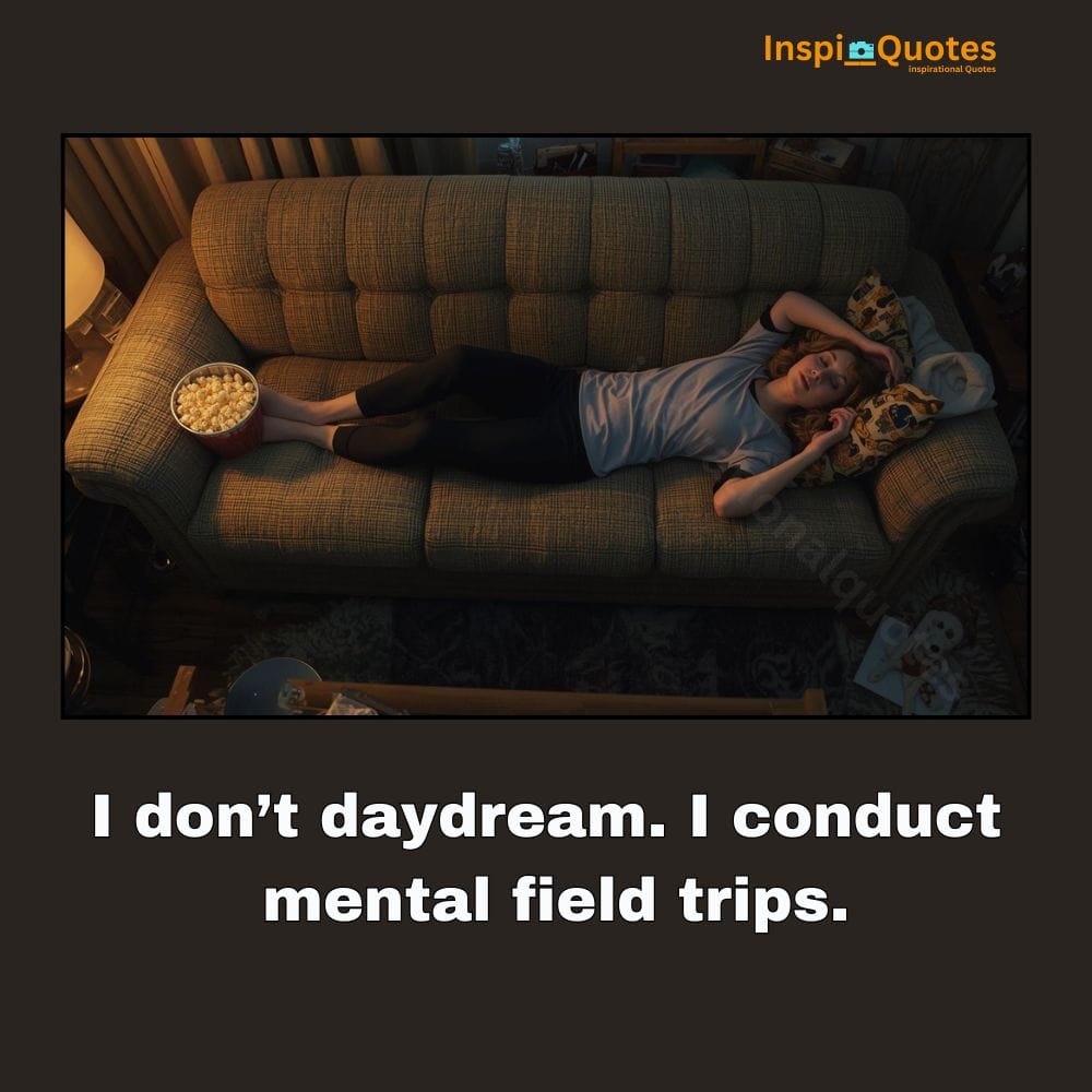 Daydreaming isn’t distraction — it’s imagination in motion. This quote reframes mental wandering as intentional exploration. It celebrates the creative power of drifting thoughts and the joy of escaping reality without leaving the couch.