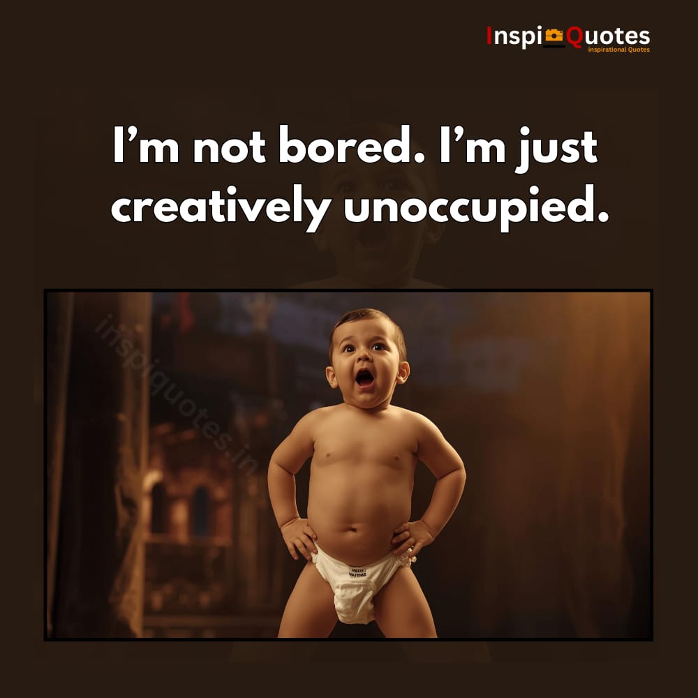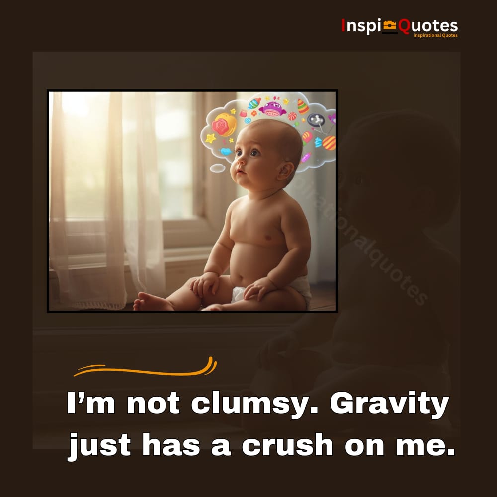 Use warm tones and curious props to evoke innocence. The baby’s expression adds relatability. Let the quote feel like a badge of quirky pride.