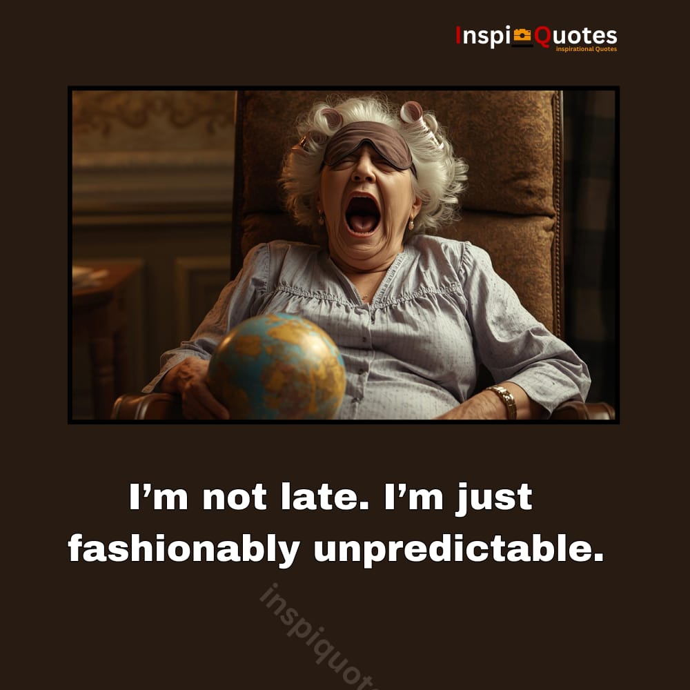 This quote turns lateness into a lifestyle. It’s not poor timekeeping — it’s unpredictability with flair. It celebrates those who arrive on their own terms, adding charm to every delay.