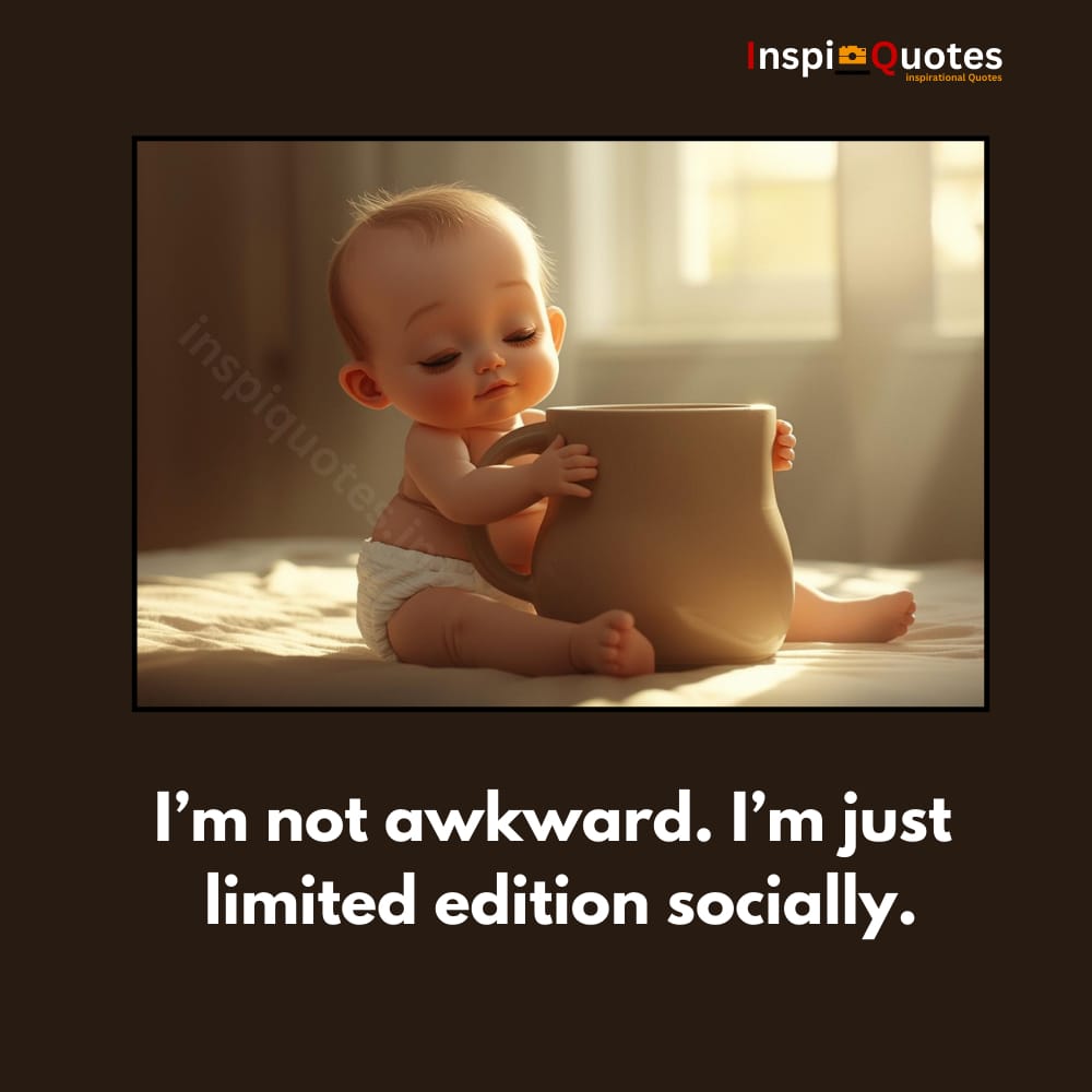 This quote celebrates social awkwardness as uniqueness. It’s not discomfort — it’s limited-edition charm. It reframes introversion and hesitation as rare personality traits worth embracing.