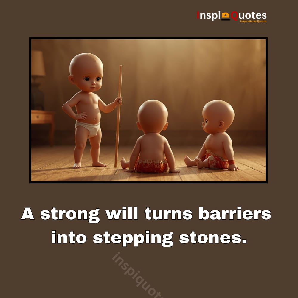 For the “challenge” quote, the design features animated baby characters in a teaching scenario — a brilliant metaphor. Babies represent potential, learning, and growth. By placing one baby in a “teacher” role and the others as attentive listeners, the image visually reinforces the idea that strength is cultivated through experience and guidance.