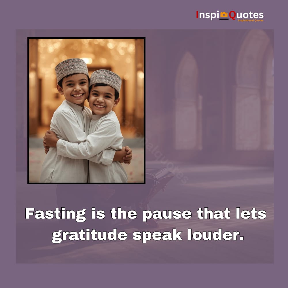 **Unique Commentary:** The children’s embrace reflects **gratitude made visible**. Fasting quiets the external noise of the world, allowing the heart's voice to amplify. This quote celebrates the emotional clarity and thankfulness that emerges from restraint.