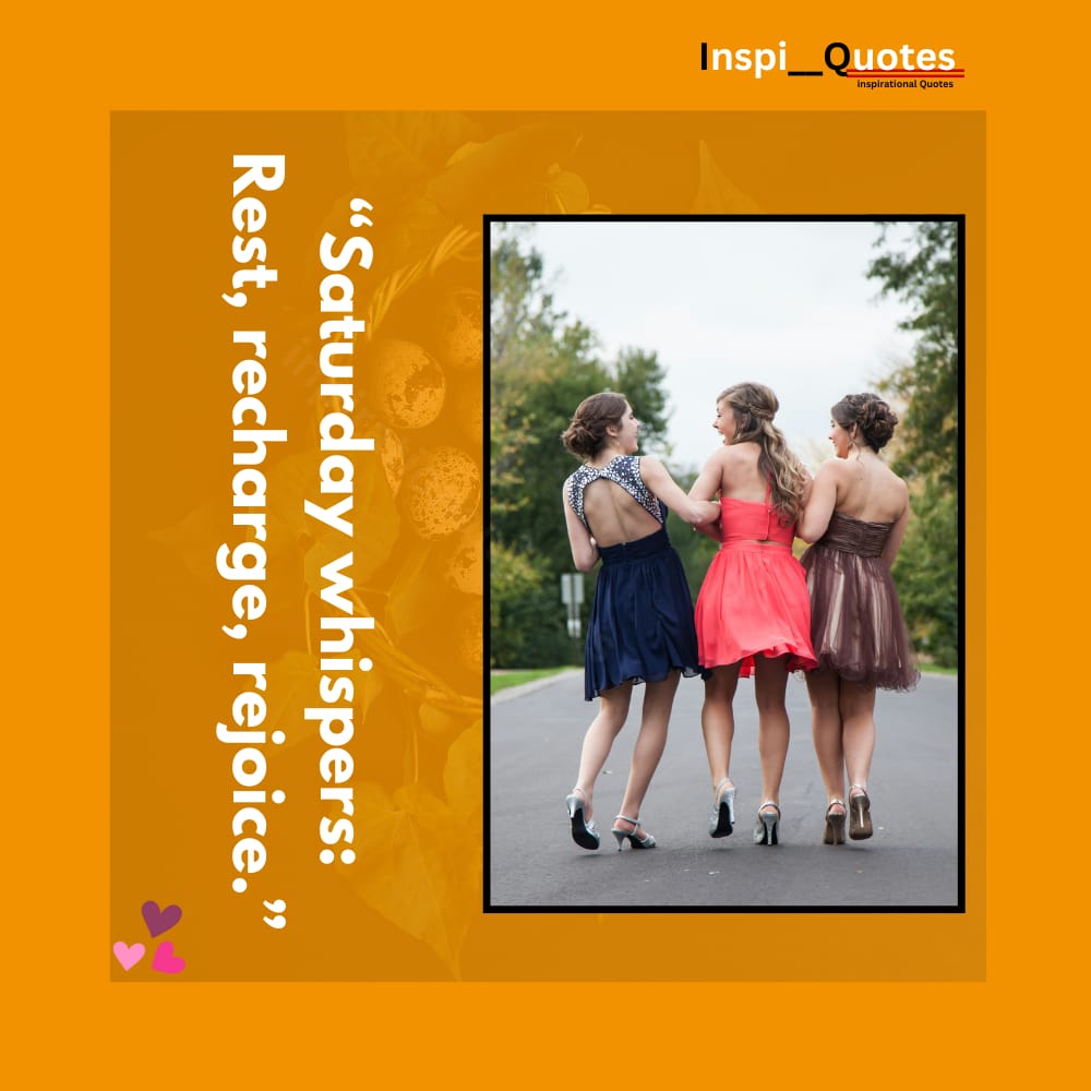 Let Saturday be your moment to unwind, recharge, and embrace spontaneity. Whether itтАЩs a weekend line, relaxing thought, or chill vibe, your quote can bring calm to someoneтАЩs scroll. Share it on WhatsApp, Instagram, or simply keep it close as a laid-back reminder. ЁЯЫЛя╕П