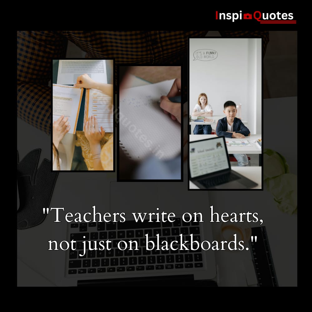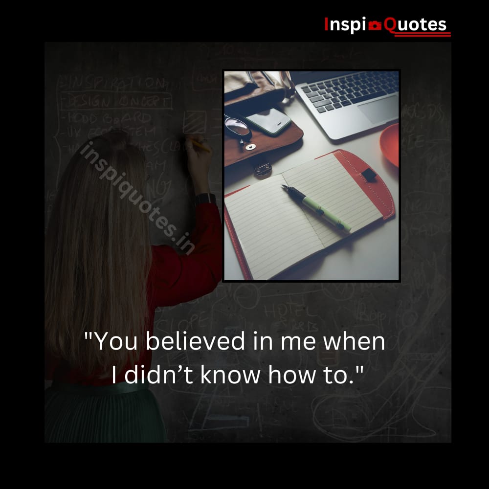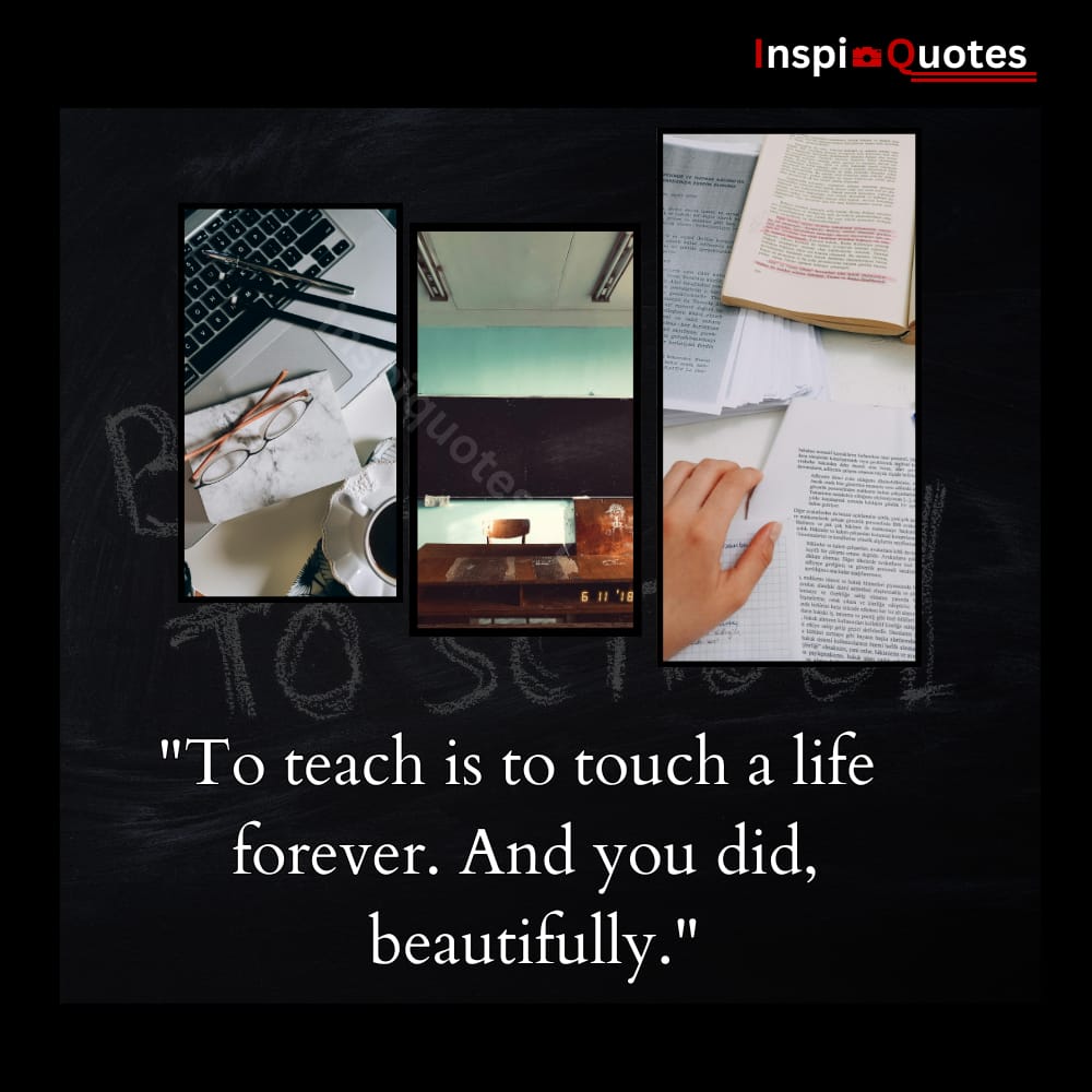 This desk-and-notebook moment turns teaching into transformation. The quote celebrates educators who guide, inspire, and uplift. The pen-in-hand and soft workspace reflect emotional depth and quiet impact.