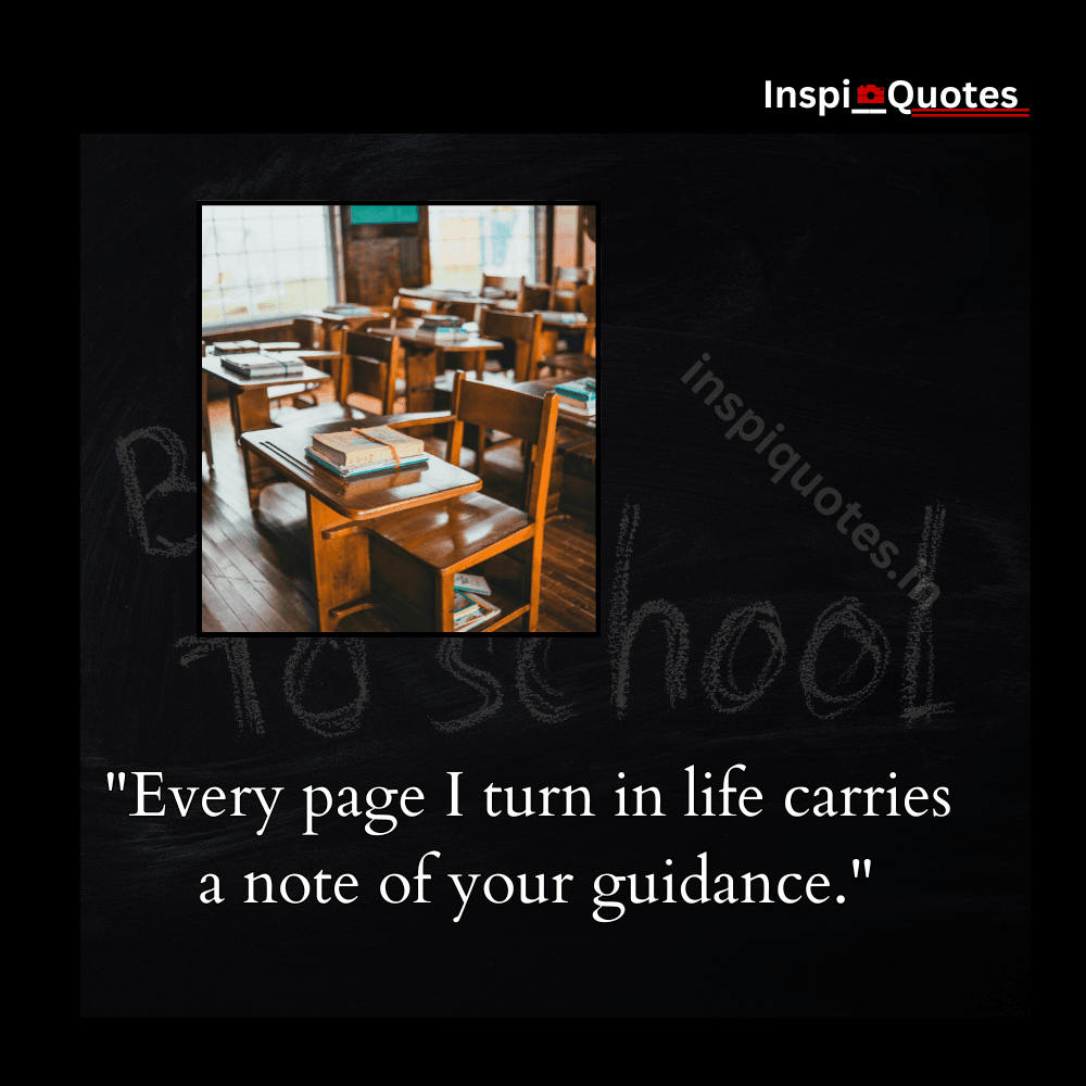 This classroom moment turns guidance into gratitude. The quote honors the lasting influence of a teacher — every page in life shaped by their wisdom. The nostalgic desks and chalkboard glow reflect emotional depth and quiet legacy.