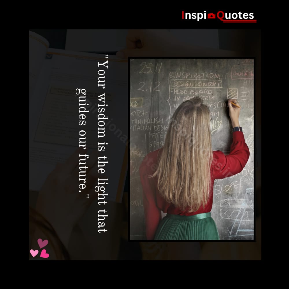 This chalkboard moment turns wisdom into light. The quote celebrates educators as guides — illuminating futures with knowledge and care. The mathematical notations and red-green attire reflect depth, clarity, and emotional warmth.