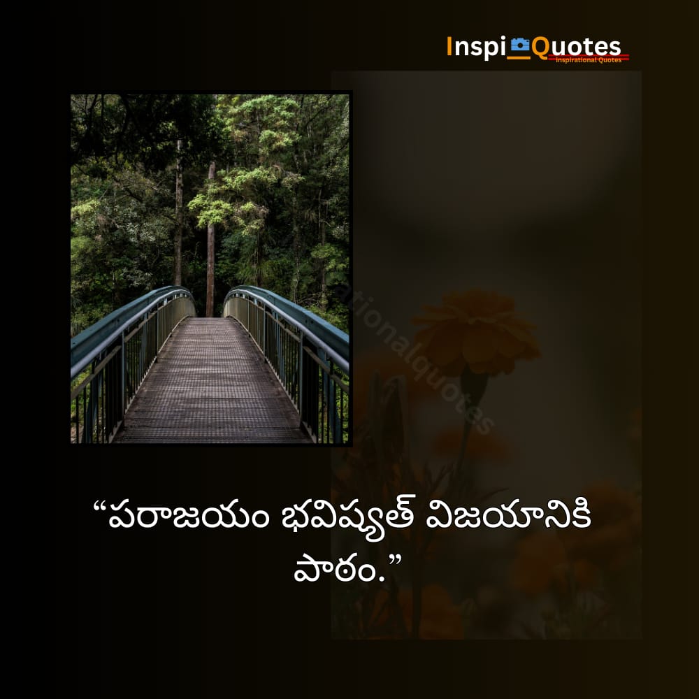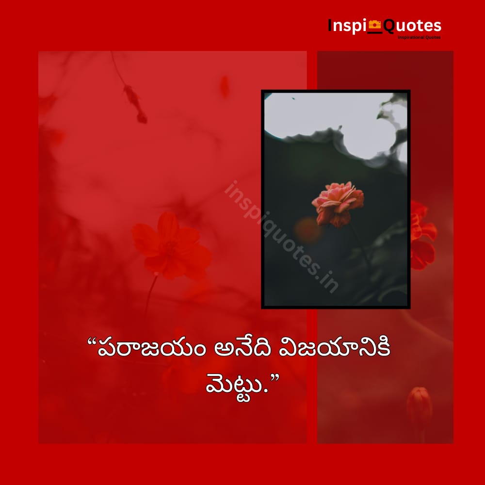 “పరాజయం అనేది విజయానికి మెట్టు” — బ్లూమింగ్ ఫ్లవర్ సెంటర్లో ఉండి, ఈ కోట్ను ఒక hopeful step గా చూపిస్తుంది. ఇది failure ను growth గా చూడమని సూచిస్తుంది.