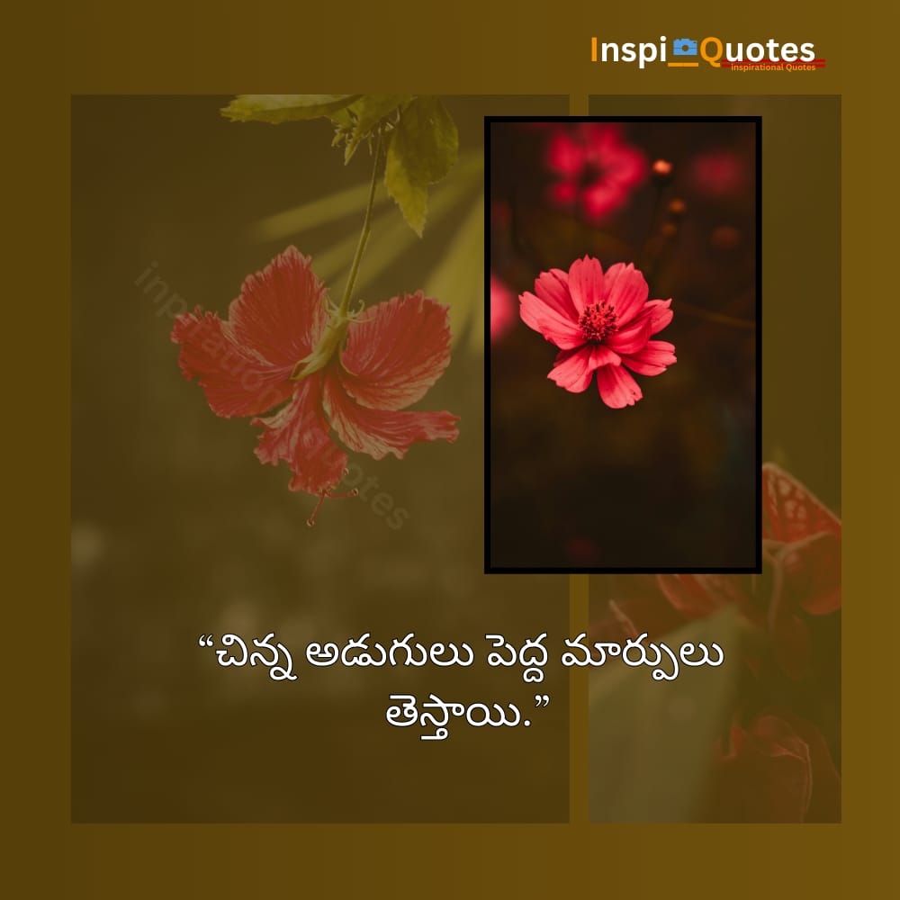 “చిన్న అడుగులు పెద్ద మార్పులు తెస్తాయి” — రెండు hibiscus పుష్పాలు ఈ కోట్ను ఒక subtle transformation గా చూపిస్తాయి. ఇది consistency ద్వారా వచ్చే గొప్ప మార్పును సూచిస్తుంది.