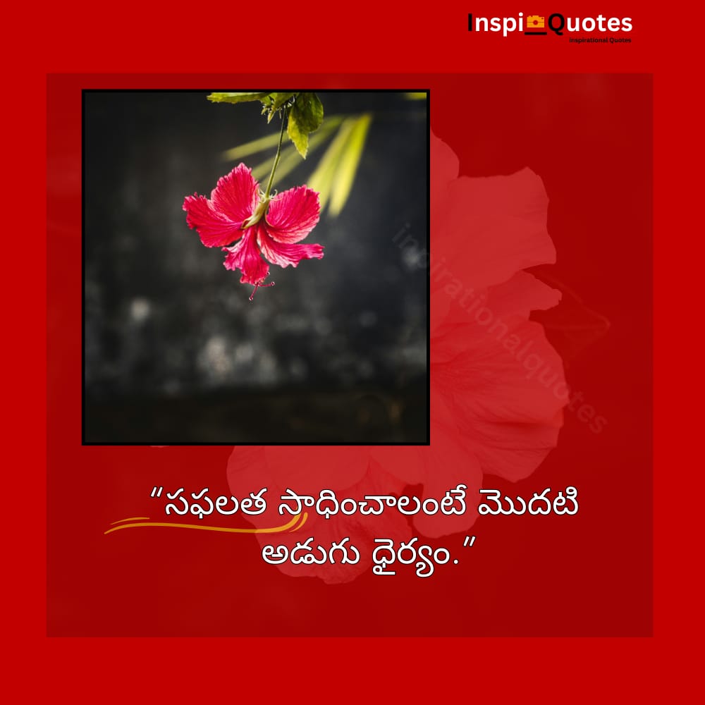 “సఫలత సాధించాలంటే మొదటి అడుగు ధైర్యం” — నీటితో తడిసిన హిబిస్కస్, ఈ కోట్ను ఒక శాంతమైన కానీ ధైర్యంతో నిండిన ప్రారంభంగా చూపిస్తుంది. ఇది మొదటి అడుగు వేసే ధైర్యాన్ని ప్రేరేపిస్తుంది.