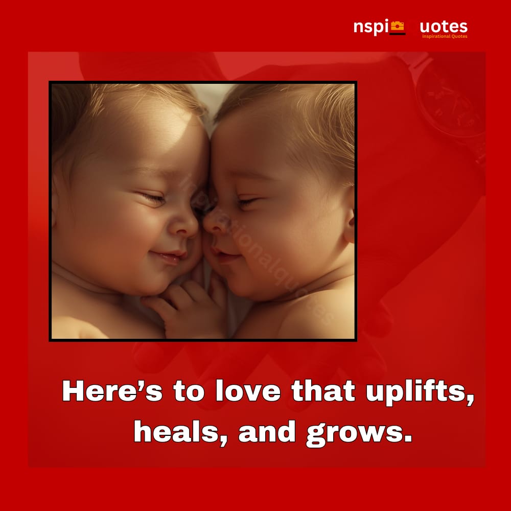 This tender moment turns innocence into emotional depth. The quote honors love that uplifts and heals — a connection so pure it nurtures growth. The sleeping infants reflect serenity and mutual comfort.
